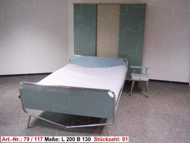 Doppelbett, Kirschholzrahmen, Stoffbezug, Bäume, stilisiert, dklbraun-dklgrau-rostbraun, B 212, L 202, H 45, Höhe Kopfteil,120, 2 Betten, 2 Matratzen, Treca