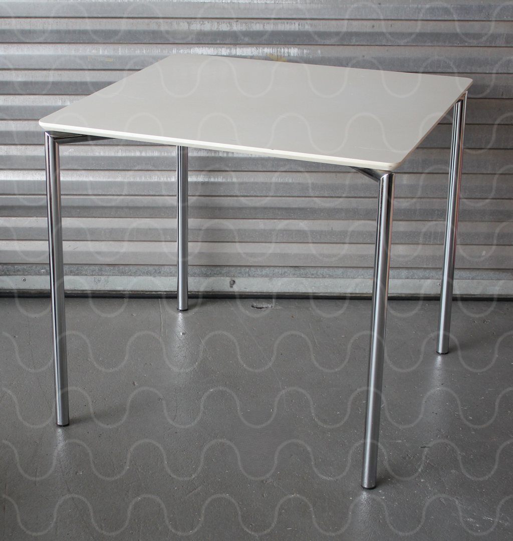 Küchen-/Esstisch, weiße Platte, Chrombeine, 80 x 80, H 74,