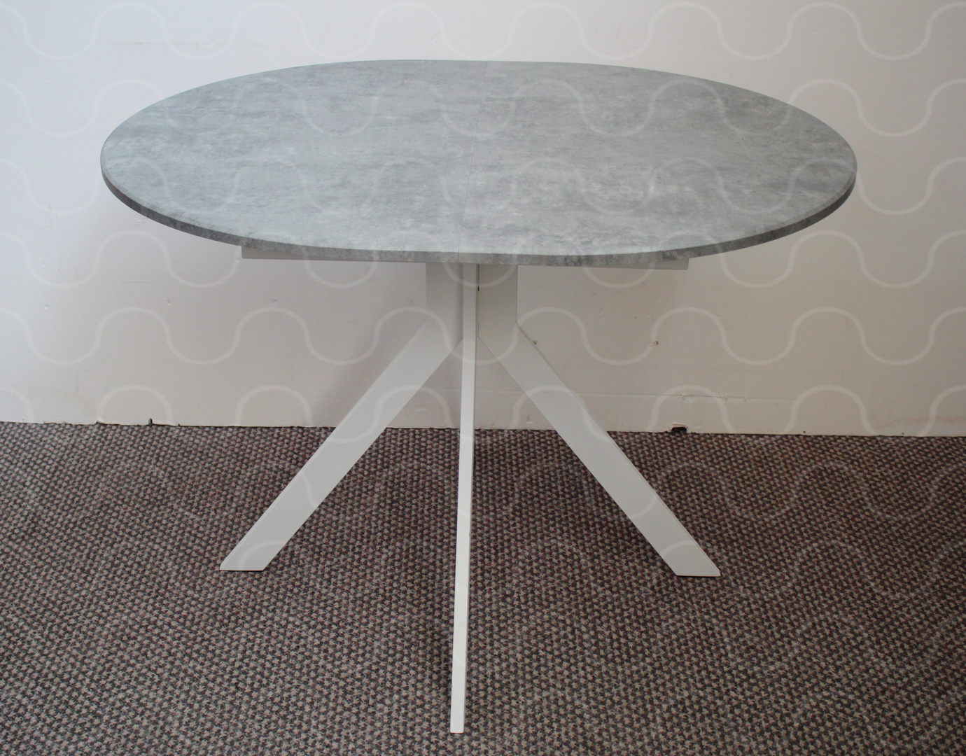 Esstisch, Marmorimitat hellgrau, oval, 4 Holzbeine,