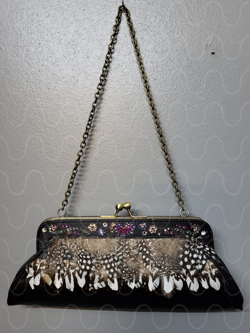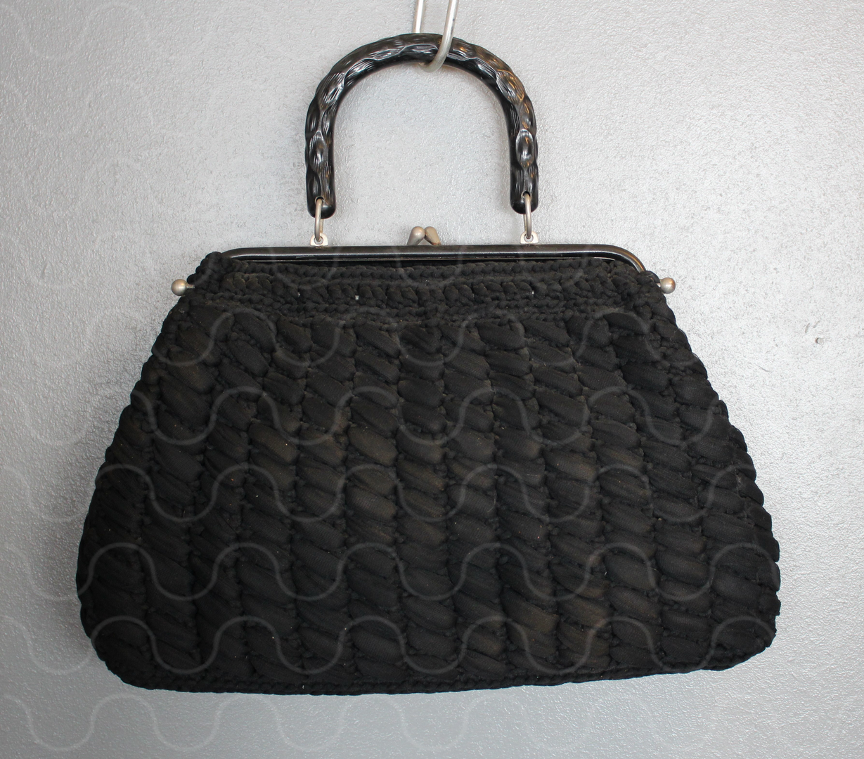 Damentasche, bestickt, schwarz, Rose u. Blüten,