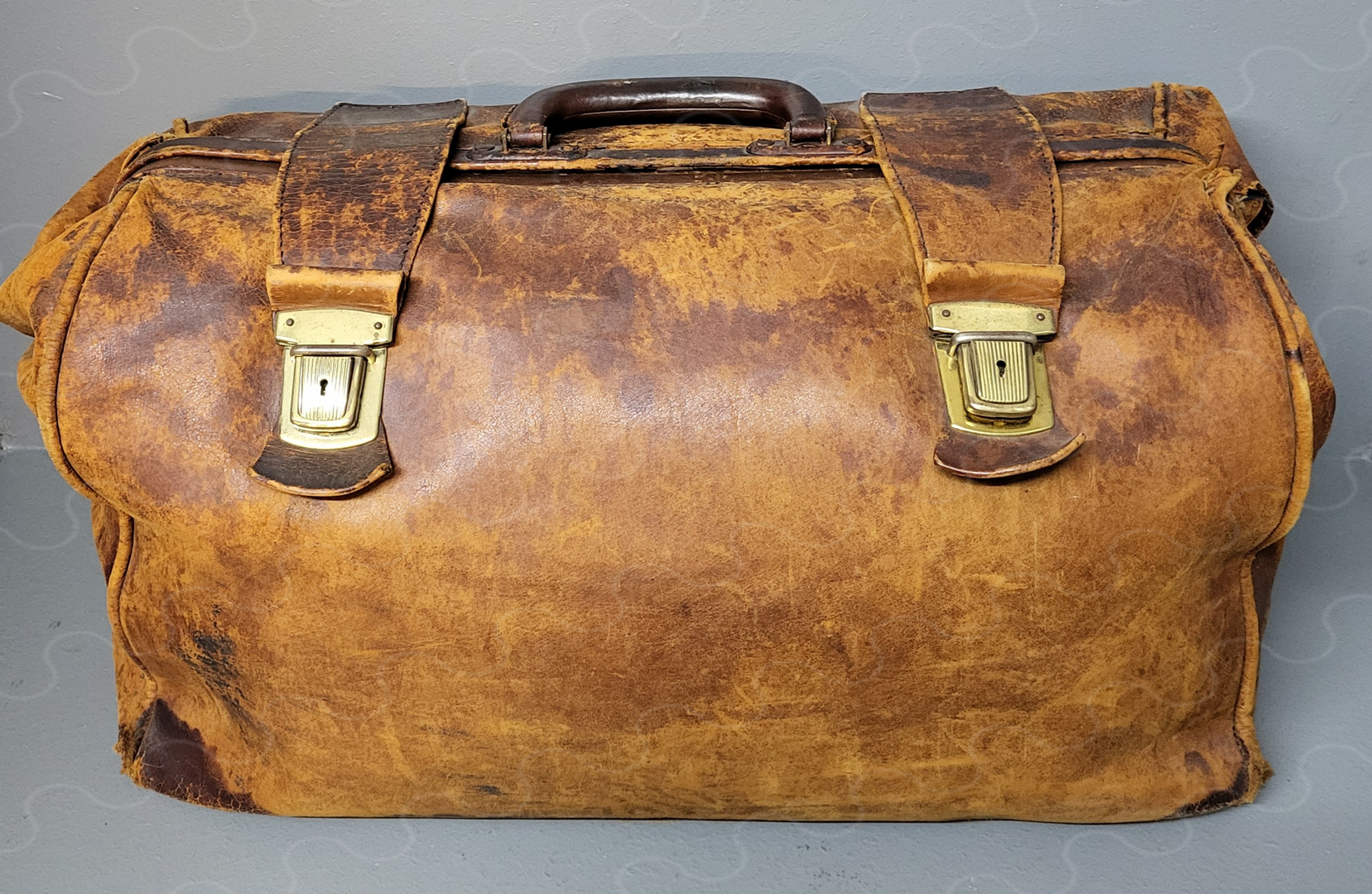 Arzttasche, Leder, dklbraun, Metallbügelverschluß, antik,