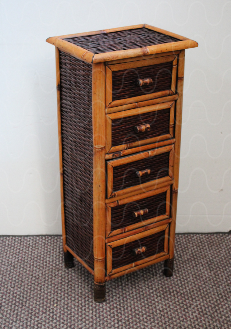 Kommode, Rattan hell, Bastgeflecht,5 Schubfächer,