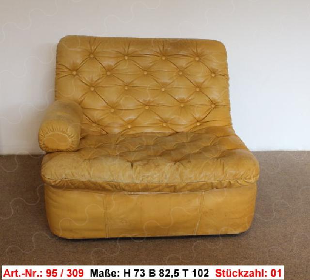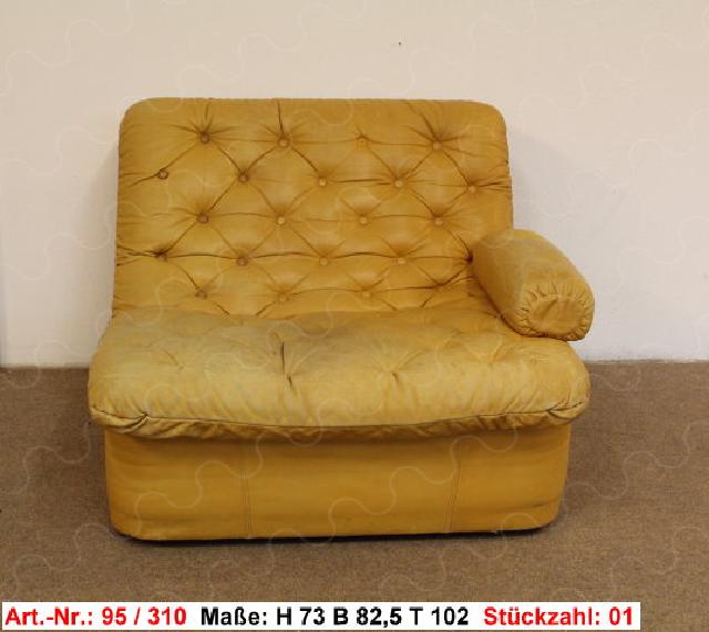 Sessel, gelbes Leder, mit Knöpfen, 1 Armlehne