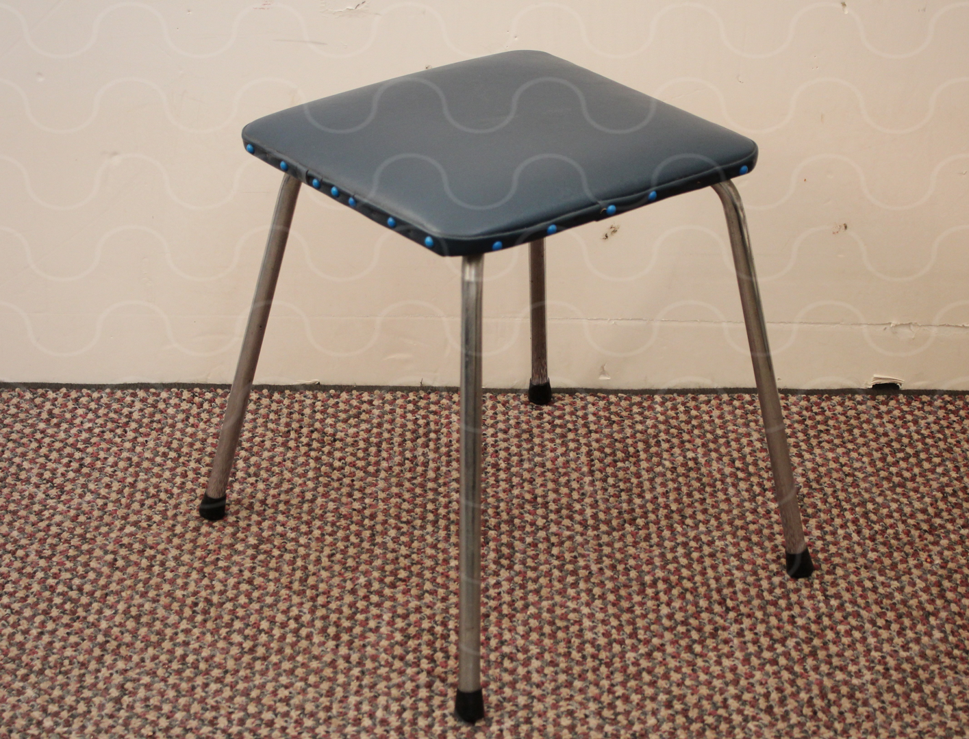 Hocker, 4 Chrombeine, Kst.Leder blau, Nietenrand,