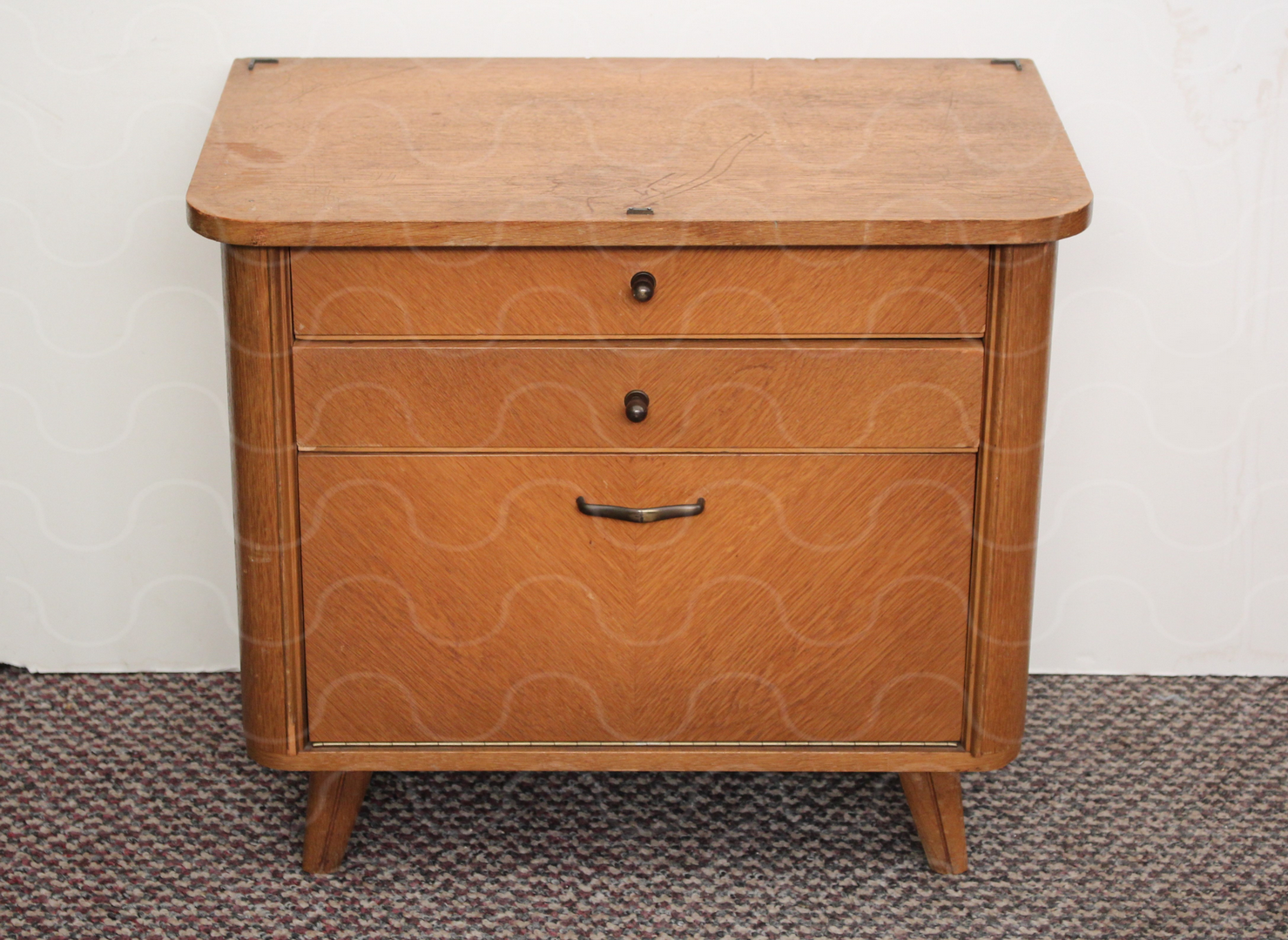 Nachttisch, Eichefurnier, hell, 40er/50er, 2 Schubfächer,