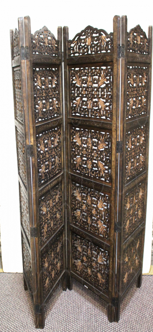 Paravent, 4 Flügel, Holzgitterfüllungen, Blüten u. Blätter,