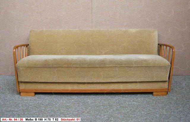 Schlafsofa, Holzgestell, hellgrüner Bezug, 50er Jahre