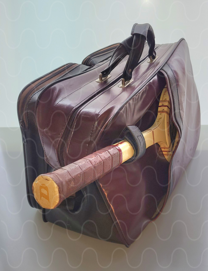 Tennisschlägerkoffer, 70 er, grün/ beige,