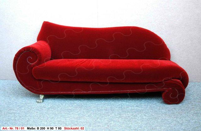 Récamiere, Gaudi, roter Bezug, Goldnagelkanten