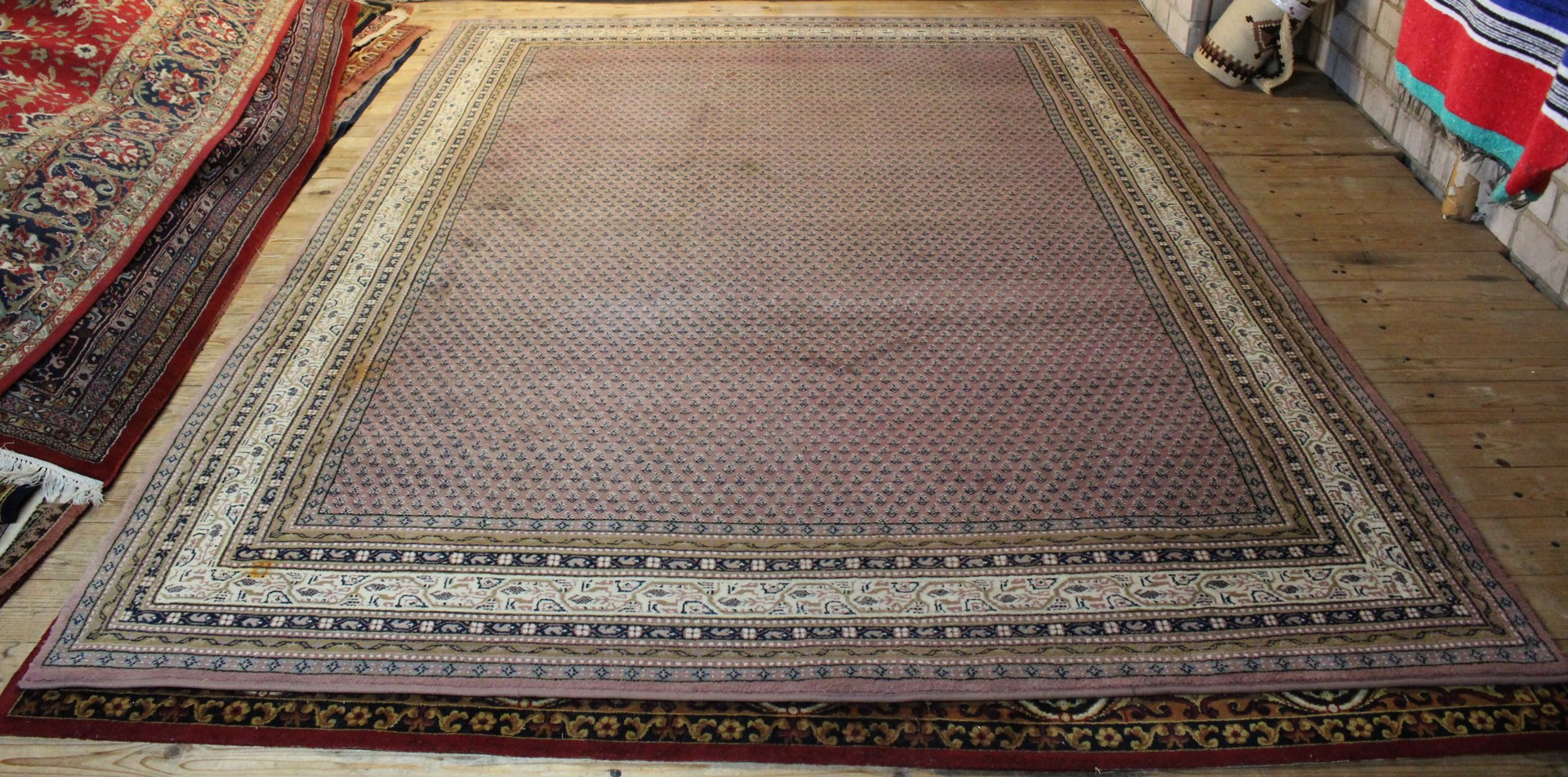 Teppich, Wolle, orient., altrosa, Rand dklblau,