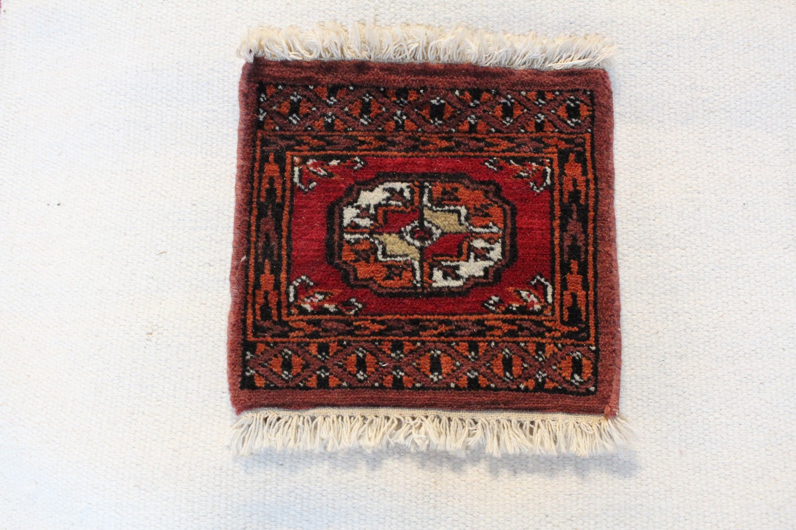 Teppich, Wolle, orient. dklrot, klein gemustert,
