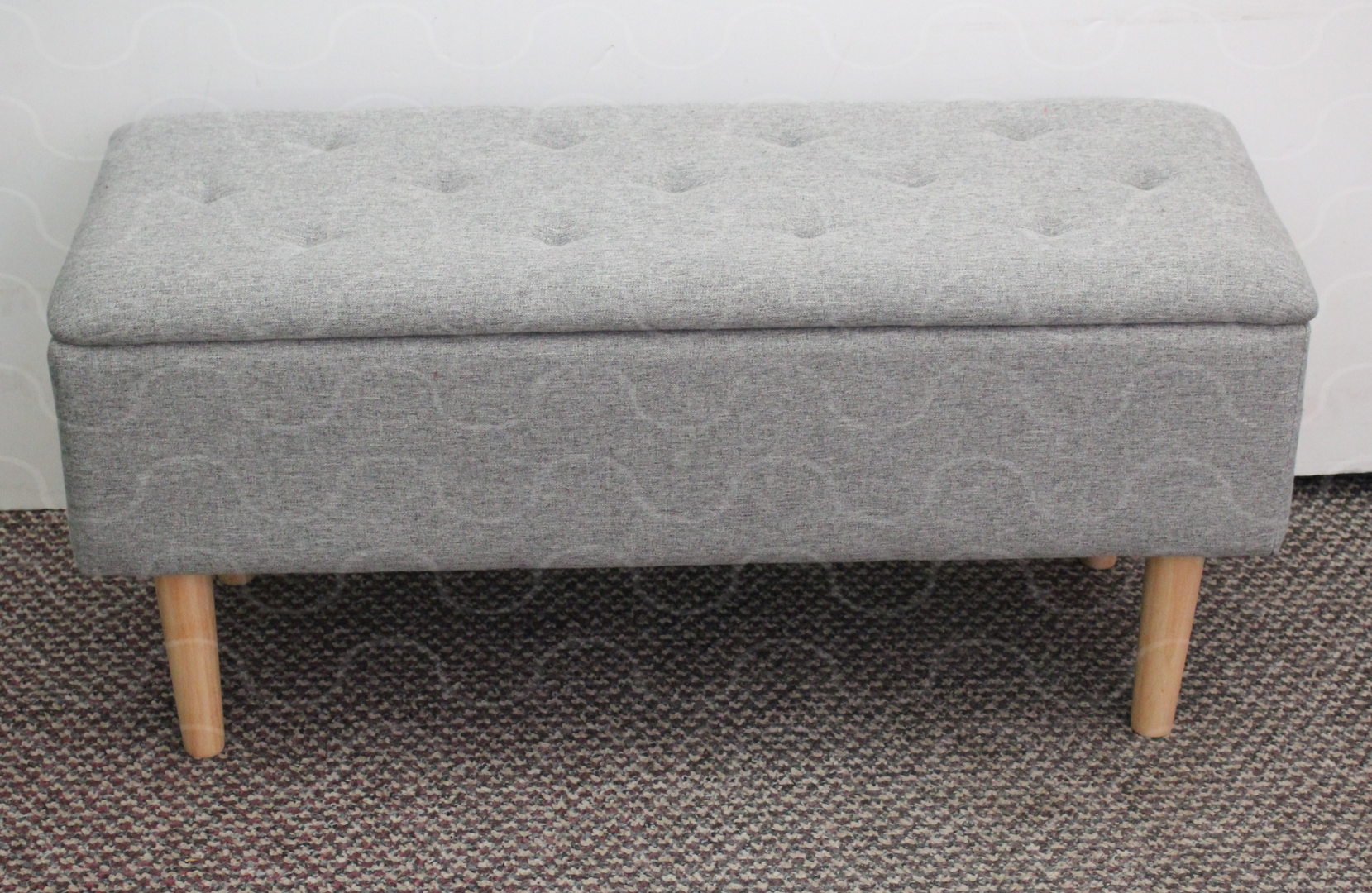 Bank, Stoffbezug, kapitoniert, hellgrau,