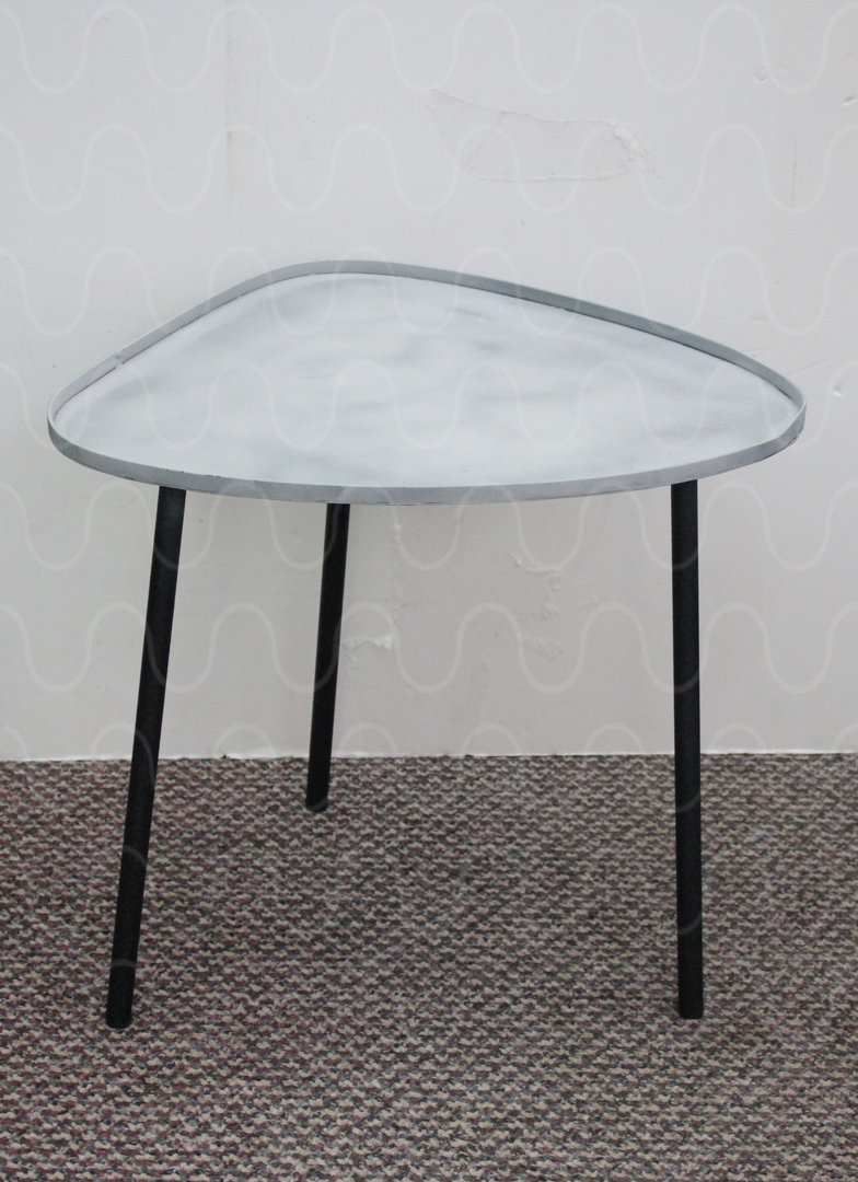 B.Tisch, Metallplatte m. Rand, weiß-grau, 3 Beine,