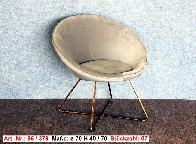 Cocktailsessel, goldfarbenes Messinggestell, grauer Veloursbezug