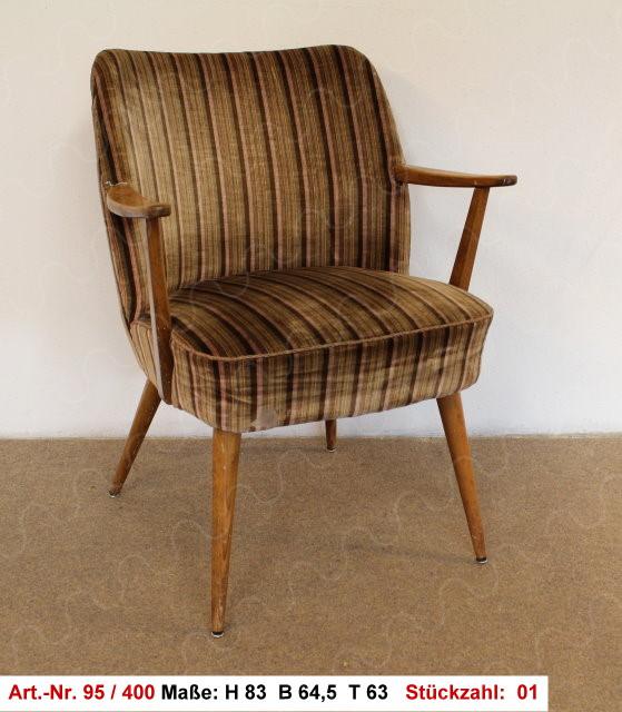Cocktailsessel, 4 Holzbeine, braun-gestreifter Stoffbezug, 50er Jahre