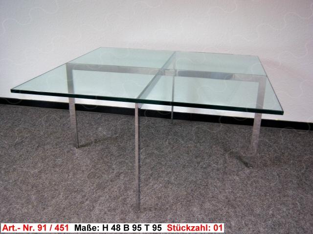Couchtisch, Le Corbusier, gebürstete Chromfüße, schwarzer Rahmen, Glasplatte