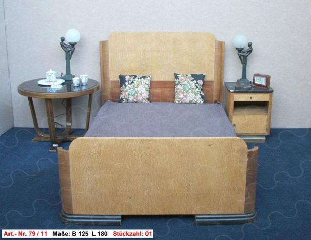 Doppelbett, dunkelbraunes Holz, Jugendstil