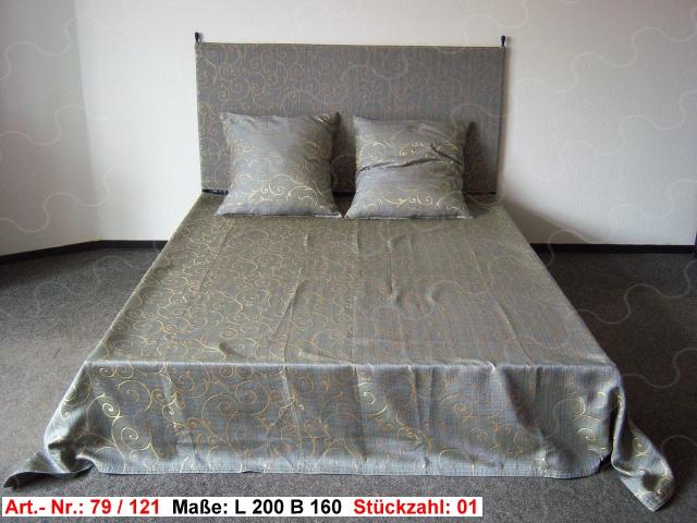 Doppelbett, grün-goldfarbener Stoffbezug, florales Muster