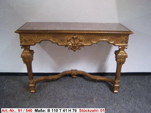 Konsole, Barock, Goldblatt, vier geschwungene Beine, reichhaltige Verzierungen, aufwändige Ausführung
