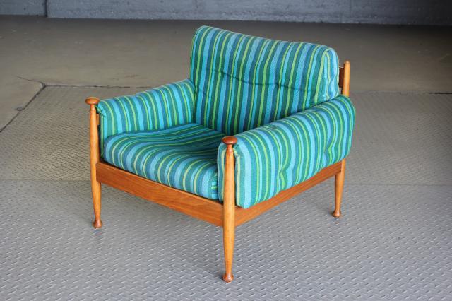 Sessel,skand.Design,1968,Wollstoffbezug,türkis-grün-hellgrün gestreift,B73,T80,H80