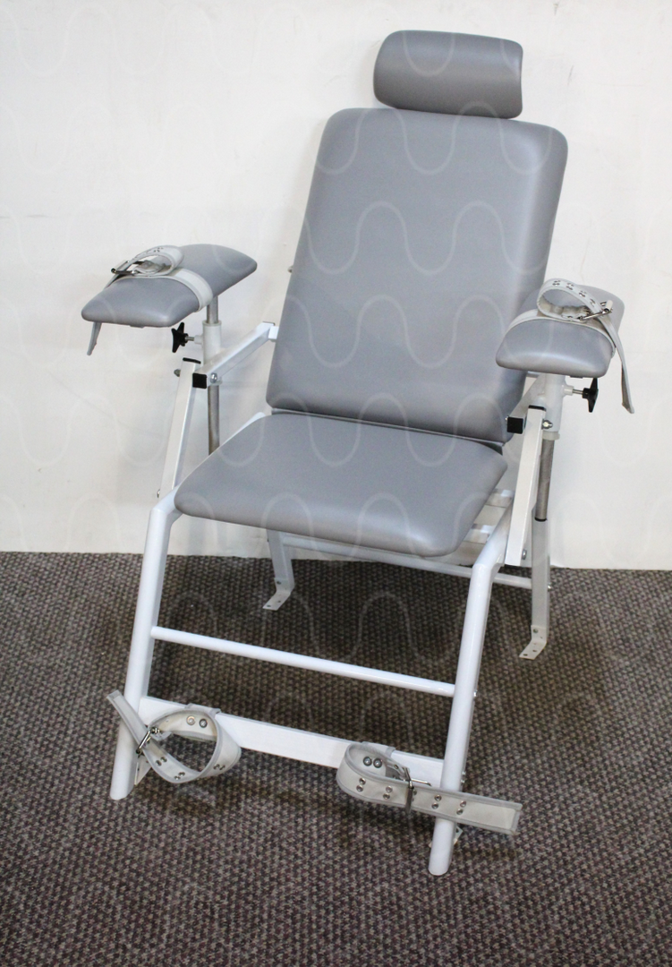 Psychiatriesessel, mit Arm- u. Fußfessel, Metallgestell, w.,