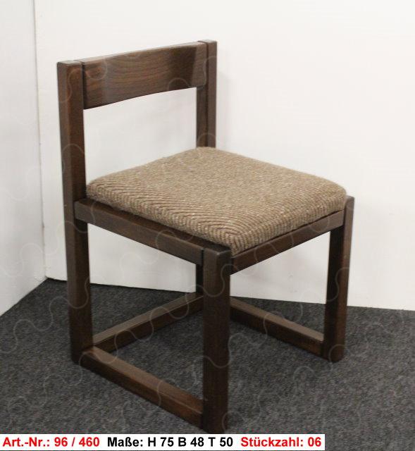Stuhl, dunkelbraunes Holz, Würfelform, gepolsterte Sitzfläche
