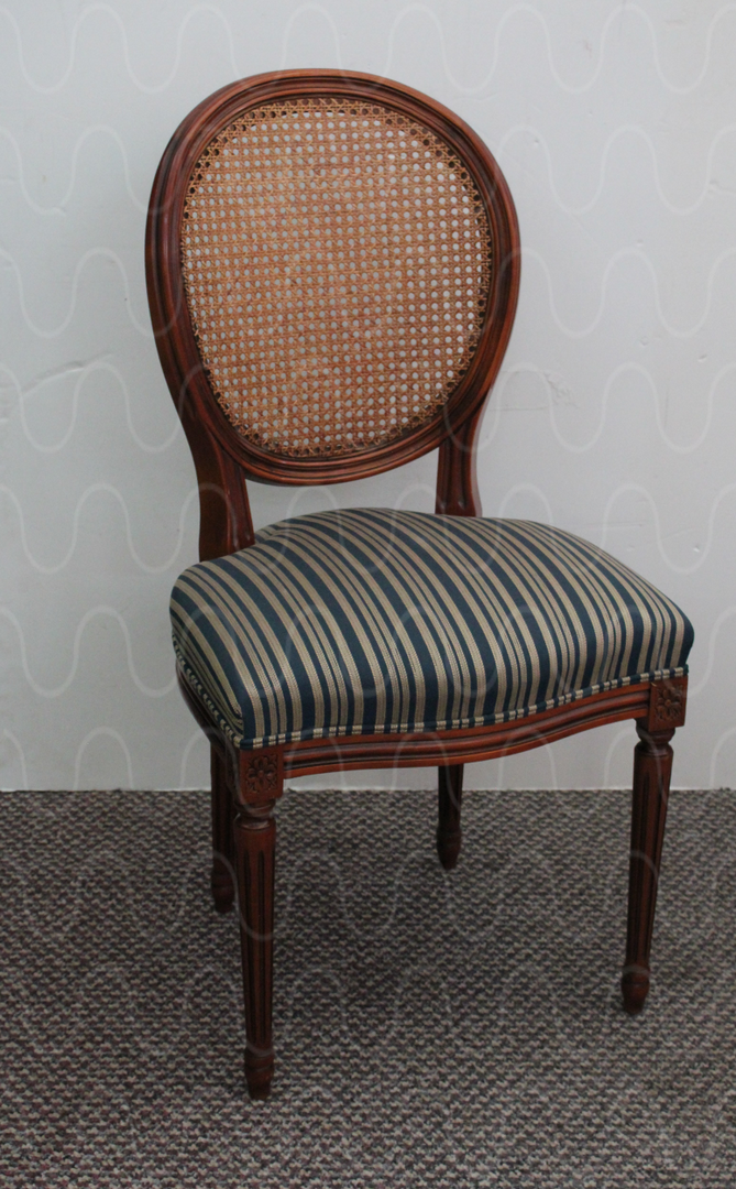 Stuhl, Louis XVI, Medaillonrücken, Bastgeflecht, Stoffpolster,