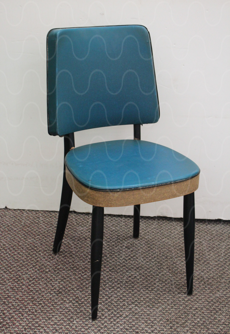 Stuhl, Esszimmer, Kst.Leder, dklblau-goldf., 50er,