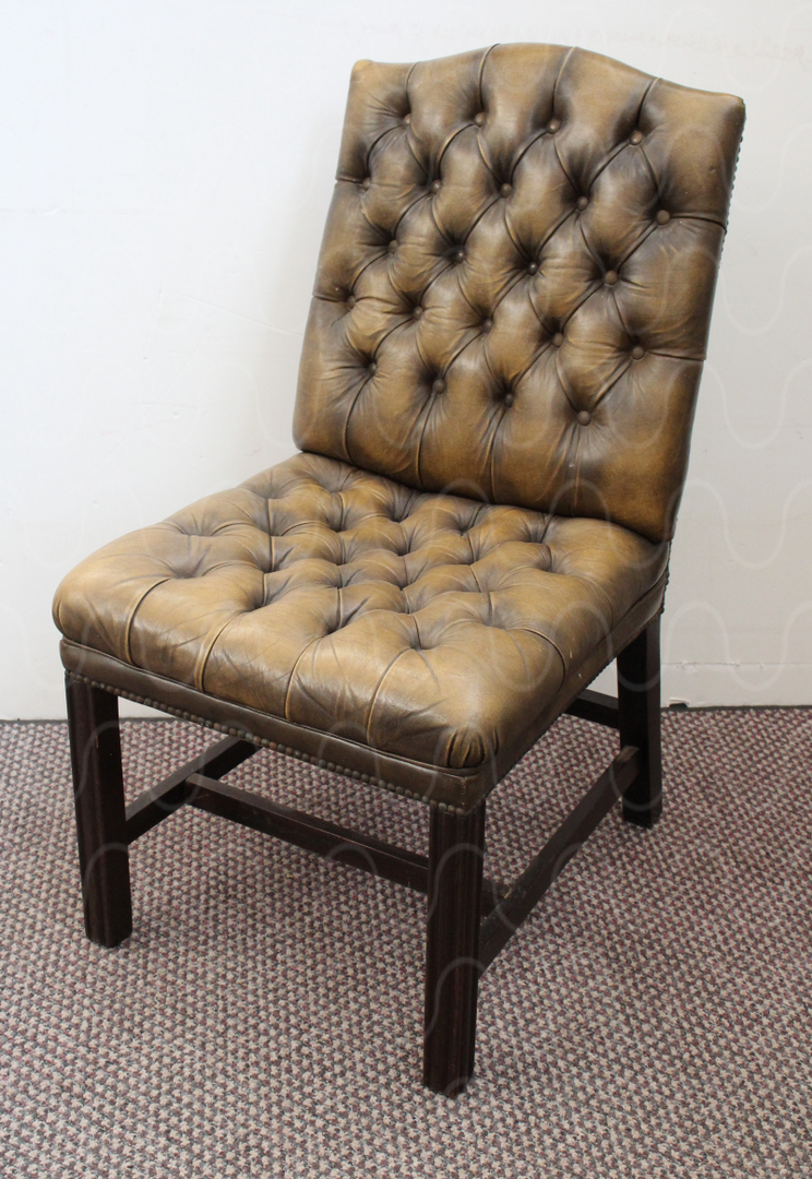 Stuhl, Chesterfield, Leder grünlich, gesteppt, Rückenlehne,