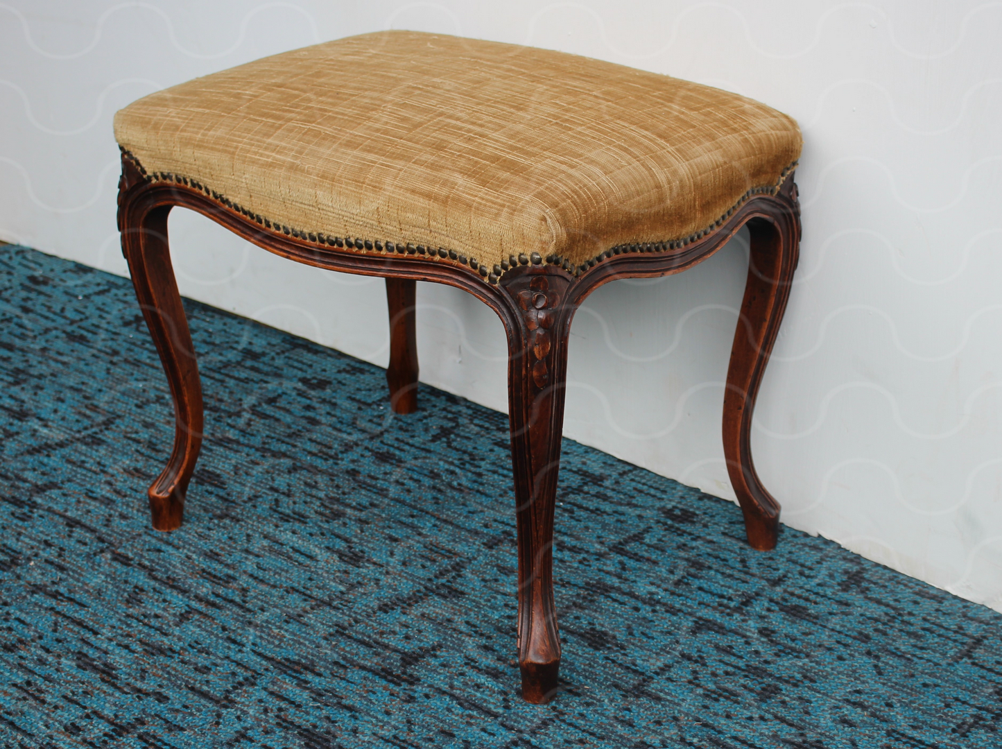 Hocker, Rokoko. Holz, Samtbezug ocker, genietet,
