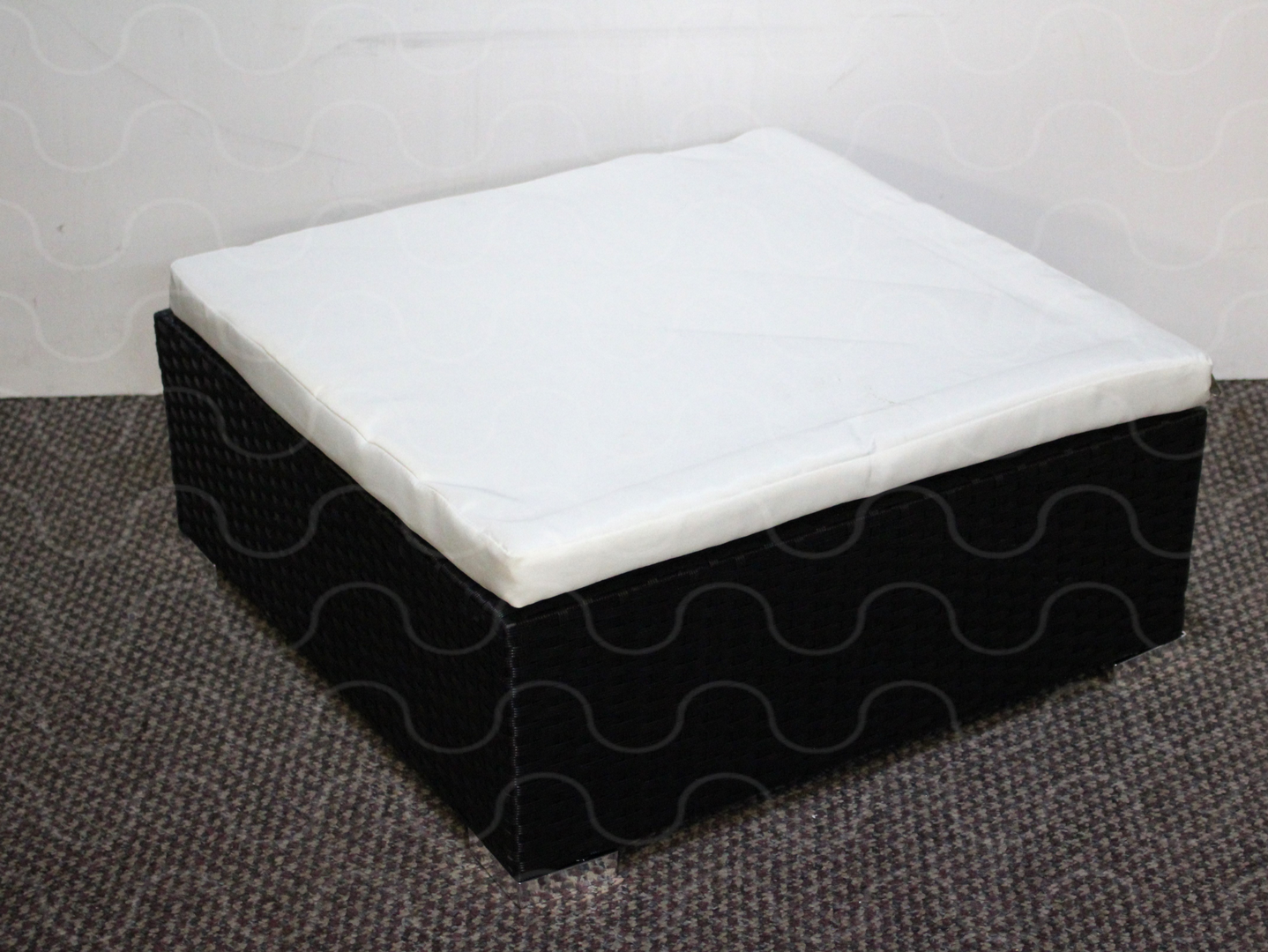 Hocker, schwarzes Kst.Geflecht, weißes Sitzkissen,