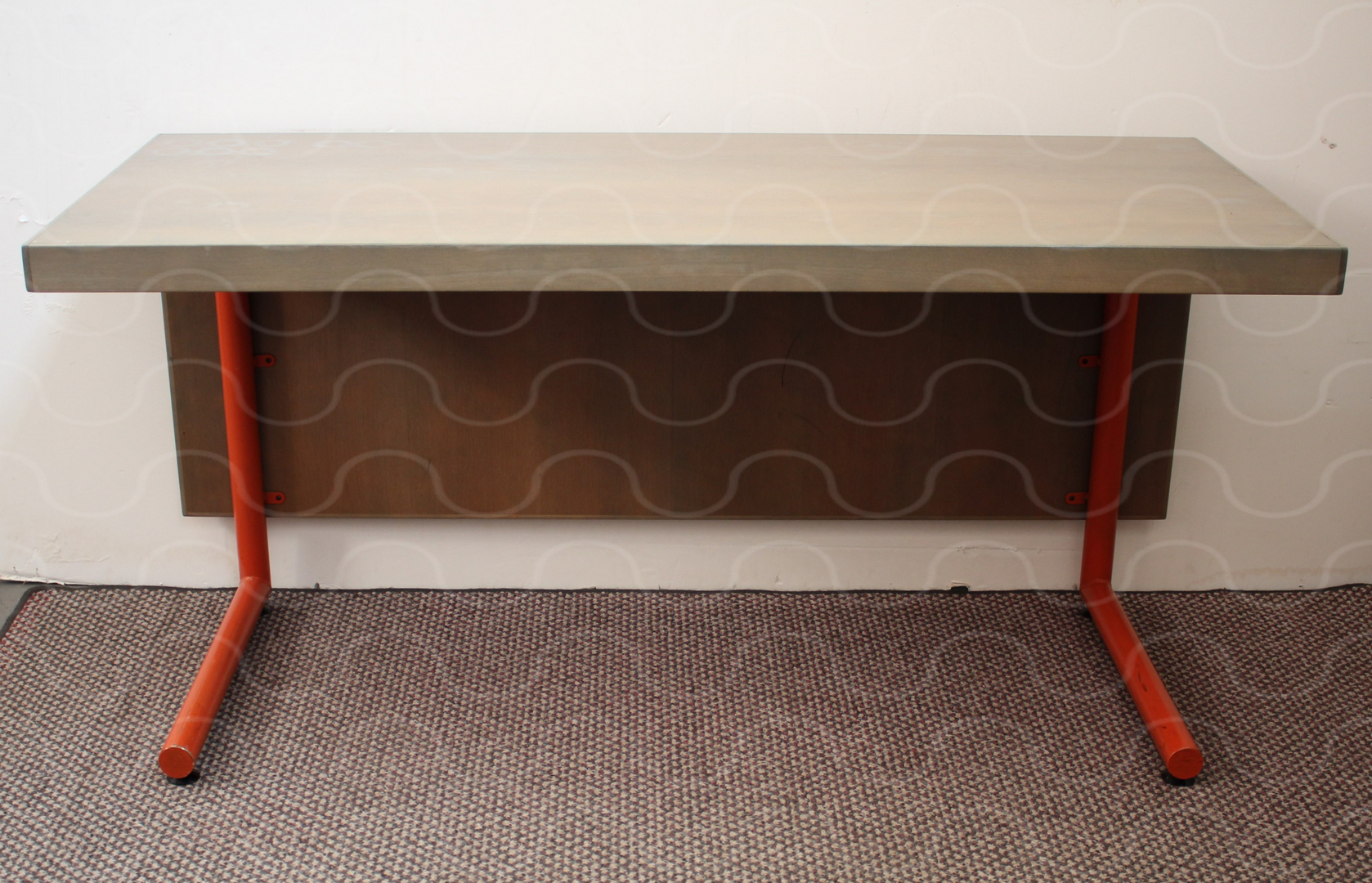 Schreibtisch, Met. grau, grüne Platte,