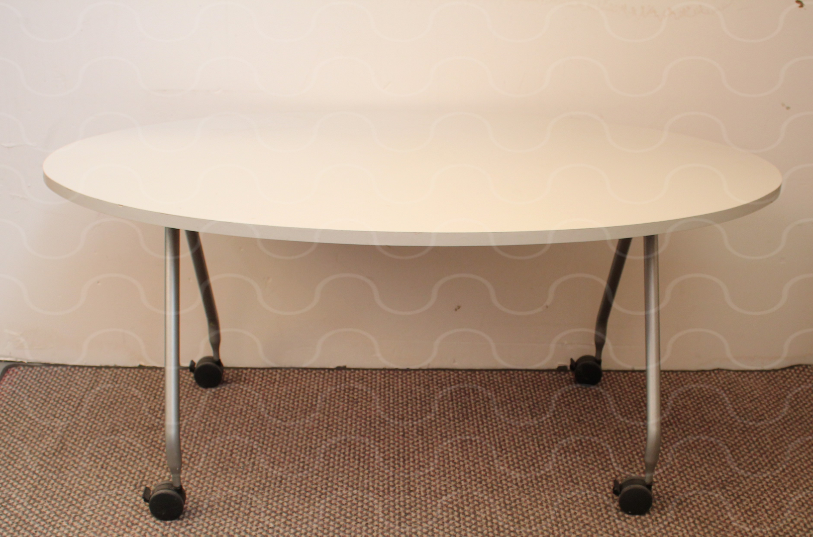 Konferenztisch, weiße Resopalplatte, schwarzes Metallgestell, 2 Verlängerungsplatten