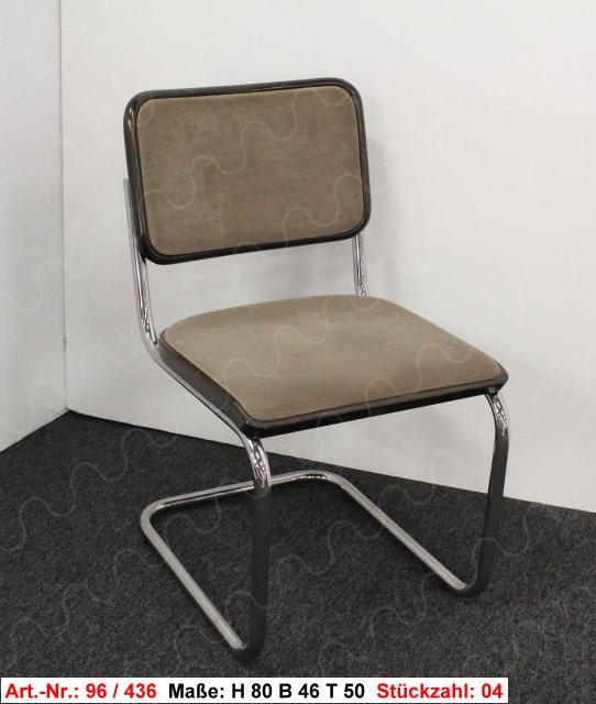 Freischwinger, Chromgestell, mit Armlehnen, Stoffpolsterung