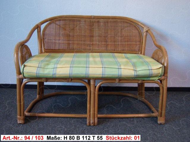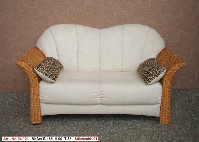 Sofa, Rattangestell, weißer Stoffbezug, 2-Sitzer