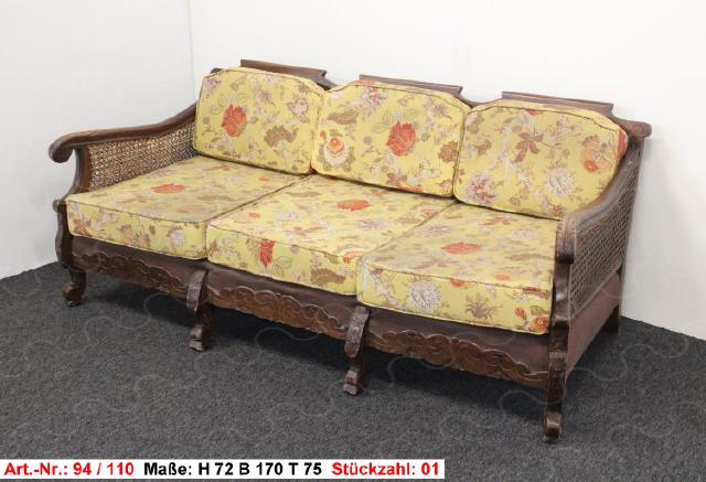 Sofa, Holzgestell, Bastflächer, Gründerzeit, 3-Sitzer